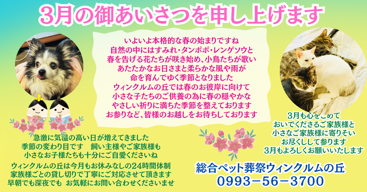 それでは3月も、私たちの精一杯のこころで皆様に寄りそい歩んでまいります。